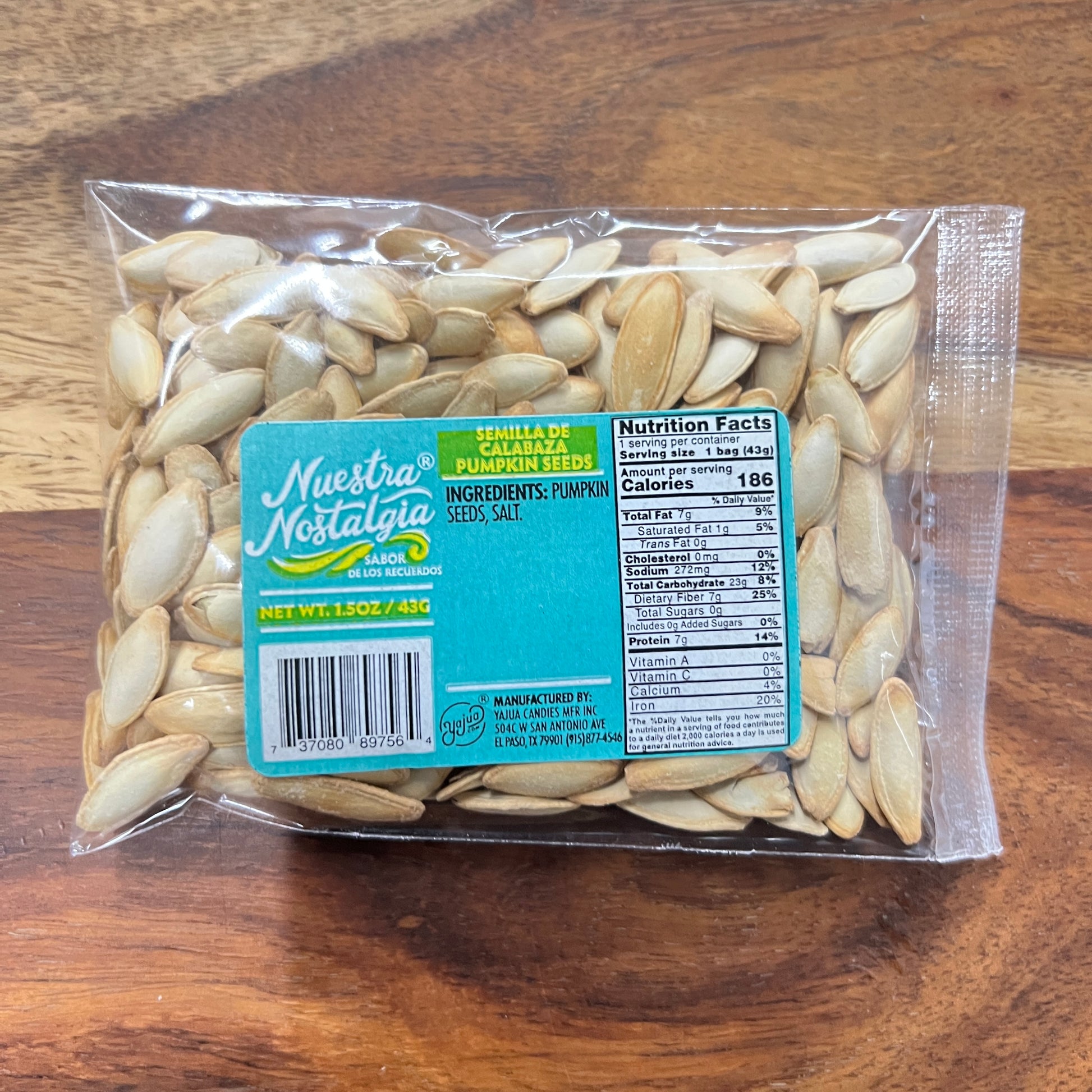 Sun dried Mexican pumpkin seeds, lightly salted for a great flavor! Get them un a 1lb bag presentation.