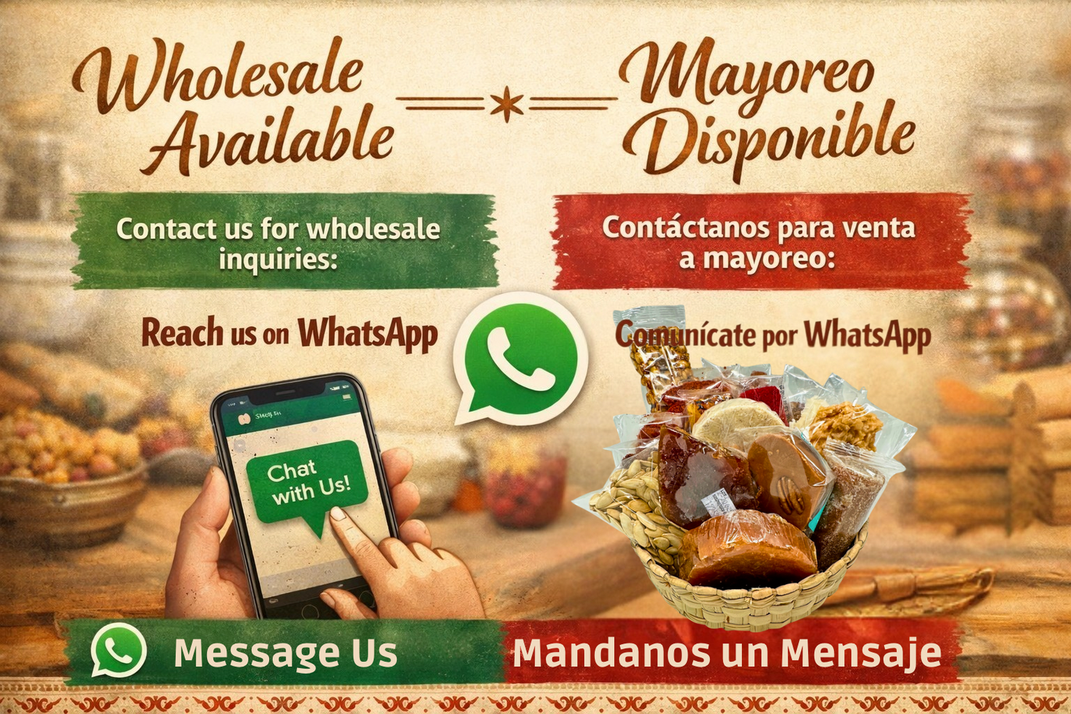 You may reach us out via WhatsApp for Wholesale / Estamos disponibles para venta a mayoreo por WhatsApp